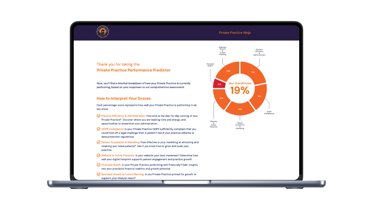 - Financial Health: Is your Private Practice performing well, financially? Gain insights into your practice's financial stability and your journey progress towards a Million Pound Private Practice.